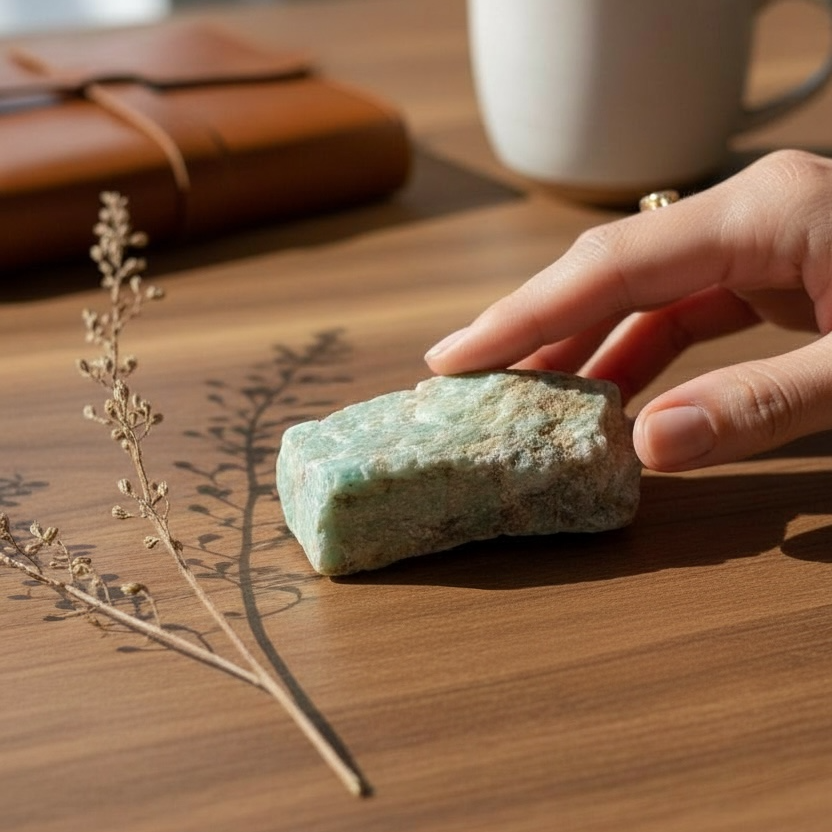 Este kit es un ritual guiado para crear un ancla real: tu Paquete de Claridad (amazonita + llave + tu frase envueltos).