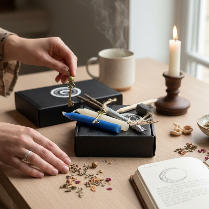 Cada edición trae todos los elementos necesarios: vela consagrada, mineral, infusión herbal, incienso, amuleto, elemento, guía impresa y un detalle exclusivo de agradecimiento. Todo está vinculado a la energía del ciclo al que va dirigido.